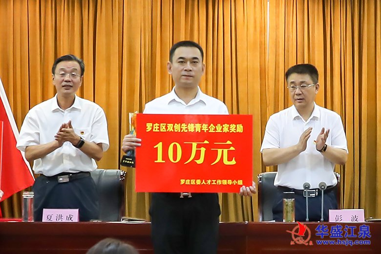 會上,沈泉莊黨委書記、華盛江泉集團常務副總經理、財務總監張毅被表彰為“第三屆羅莊區雙創先鋒青年企業家”,獲得一次性獎勵10萬元。張毅上臺領獎。